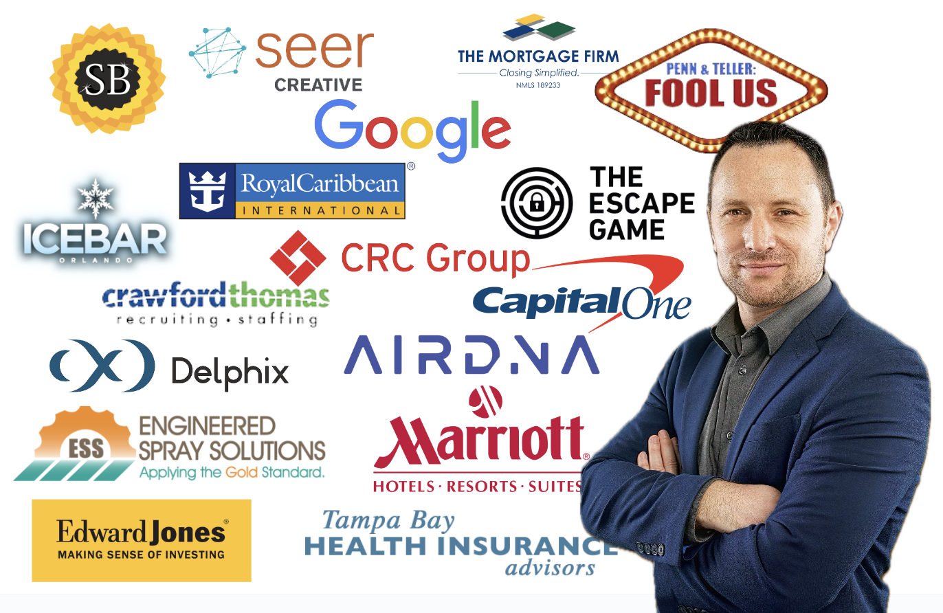 Ari is the Orlando event magician for corporate gatherings large and small. Ari has helped over one hundred companies with their corporate magician needs. The show is interactive, impossible, and engaging.